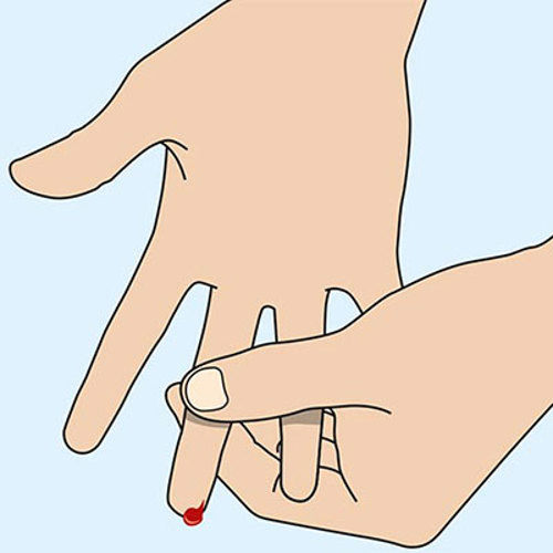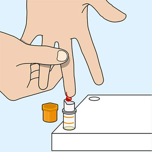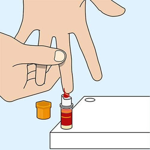 Massage your hand and finger, without squeezing, to help the blood drop into the blood collection tube.