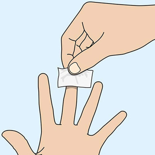Using the Alcohol Swab clean your chosen finger, then wipe dry with a clean tissue.