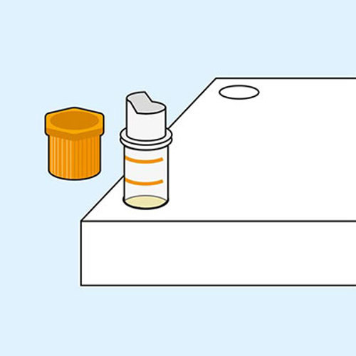 Take the tube and insert it into one of the smaller holes in the tray. Remove the cap and put it to one side.