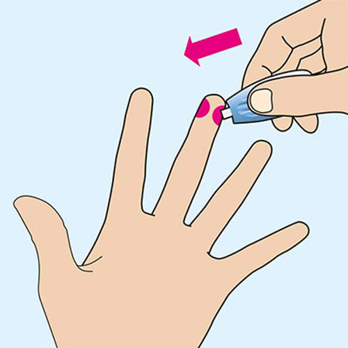 Position the lancet against the side of your finger. Press the lancet firmly against the skin until a click is heard.